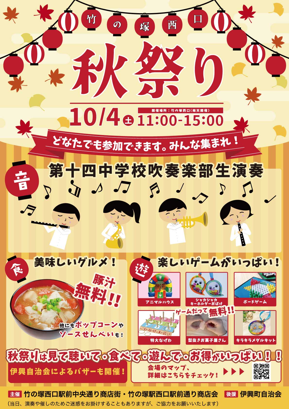 実りの季節を迎え、日ごろの感謝を込めて、今年も竹の塚西口商店街では「秋祭り」を開催いたします。